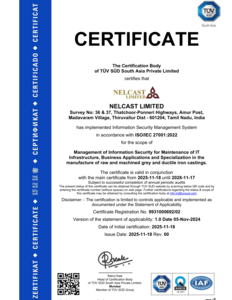 Quality is the hallmark of Nelcast. Products undergo rigorous quality checks at every stage of production. In order to ensure the physical & dimensional properties of our products, our Quality Control Department has facilities for: